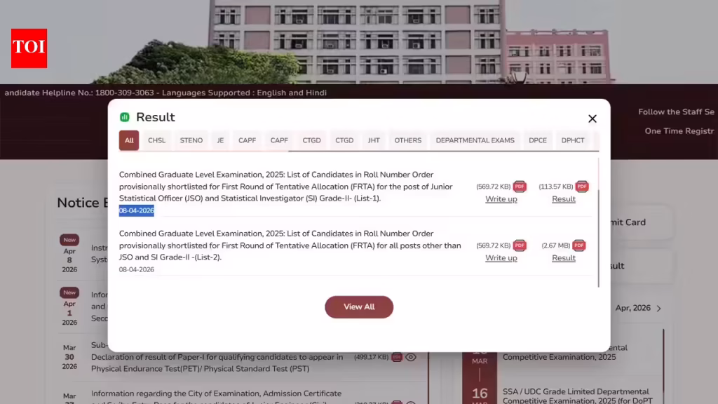 Ssc Cgl Final Result 2025: SSC CGL 2025 first round of allocation list released; check cut-offs and other details here – The Times of India
