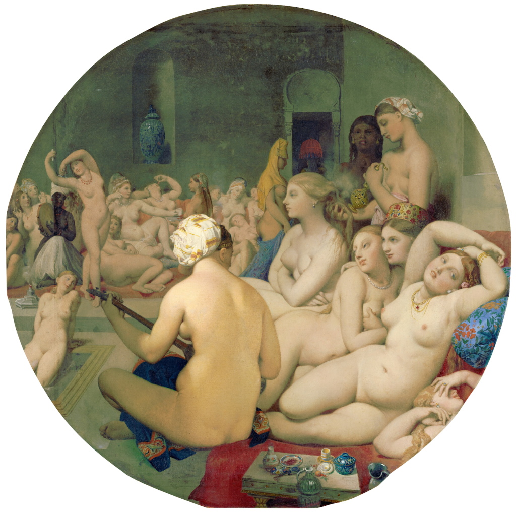 Jean-Auguste-Dominique Ingres’s The Turkish Bath (1862) is the perfect representation of Orientalist fantasy. A harem is filled with languid female bodies offered for male consumption. The women are anonymous, obviously, their particularity dissolved into exotic types. The space is timeless.