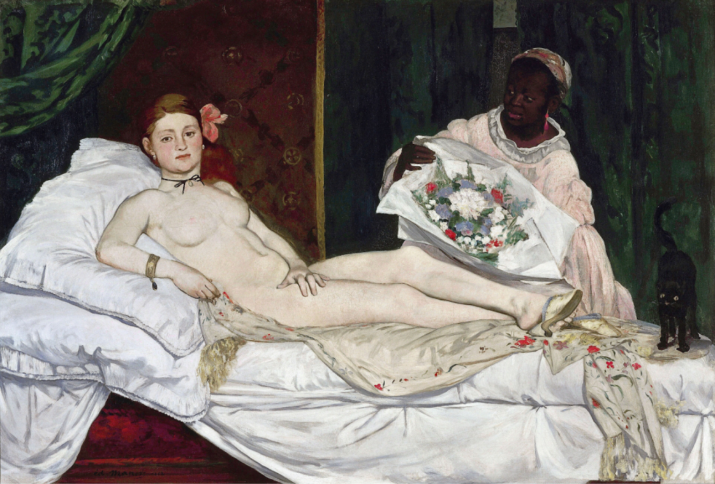 This self-awareness is precisely what classical objectification lacks. When the female nude in Western tradition occasionally gazes back—most famously in Édouard Manet’s Olympia—her gaze (and its return) is read as resistance. A refusal to be purely passive. Classical objectification depended on the viewed figure’s apparent unawareness, their passive availability. Sleigh’s mirrors shatter that passivity. In her mirror confrontation, Paul Rosano, beyond awareness of the viewer, is also confronting his own exposure, watching himself occupy a position long coded feminine.