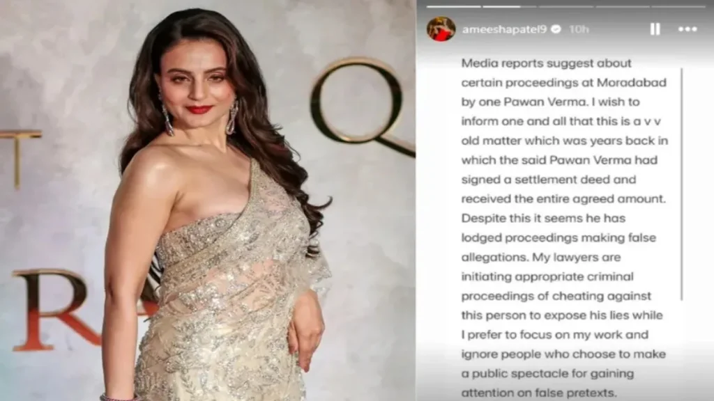 Following media reports about the non-bailable warrant, Ameesha Patel took to Instagram Stories to clarify her stance. In a detailed note, the actress described the case as very old and emphasized that the issue had already been resolved years ago. She stated that the complainant, identified as event organizer Pawan Verma, had signed a settlement deed and received the full agreed amount as part of the resolution.