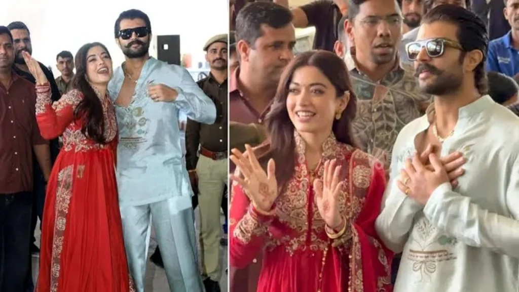 Rashmika Mandanna and Vijay Deverakonda made their first public appearance as a married couple at the Udaipur airport, delighting fans and paparazzi who captured the newlyweds’ first glimpse after their grand wedding ceremony. The couple, who recently tied the knot in an intimate yet lavish celebration, looked radiant as they greeted photographers with folded hands and warm smiles before leaving the city.