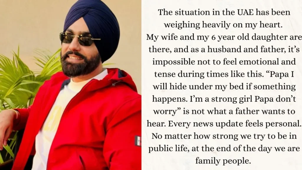 In a heartfelt message on social media, the Qismat star shared his worry for his family’s safety, revealing how difficult it has been for him to cope with the situation from home in Punjab, where he lives. He said that while he is generally strong in public life, hearing his young daughter say something so startling made it impossible for him not to feel deeply emotional. The actor quoted her saying, “Papa I will hide under my bed if something happens. I’m a strong girl Papa don’t worry,” a moment that brought into stark relief the anxiety he and many others are feeling as the crisis unfolds.