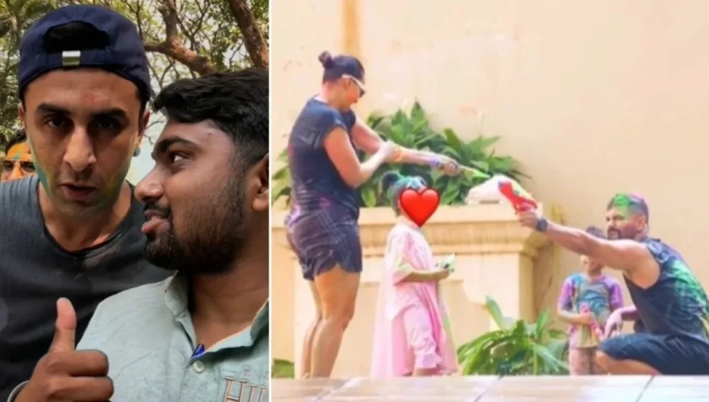 Meanwhile, Neha Dhupia was spotted celebrating Holi with her children and husband Angad Bedi. The couple appeared in high spirits, playing with colors and sharing laughter with guests. Videos from the gathering show Neha having a great time with her kids, capturing the true essence of the festival, togetherness and joy. Another video that caught fans’ attention features Ranbir Kapoor.