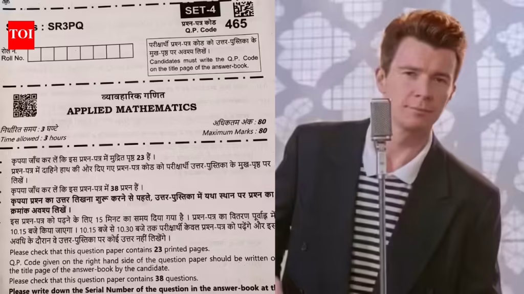 NOIDA: A QR code printed on the Central Board of Secondary Education (CBSE) Class 12 mathematics question paper triggered speculation after several students claimed that scanning it redirected them to a 10 seconds music video from the song “Never Gonna Give You Up” by singer Rick Astley.The link led to the well-known internet prank called “rickrolling,” where users are unexpectedly redirected to the 1987 hit song’s video. The incident left students surprised and sparked discussions about the authenticity of the exam paper.TOI independently checked the QR code shown on a question paper, and found that it redirected to the same music video as claimed by the student.According to students, the unexpected link raised doubts about the paper. “It looked like a prank with the students. Although the maths paper was not very tough, such links in an exam like CBSE that is conducted nationally looked weird,” said a student from Noida.Teachers explained that QR codes are typically printed on question papers as a security feature to verify their authenticity and to access paper-related information. However, they said such an incident had not been reported before.School authorities said the issue appeared in a few sets of the mathematics and applied mathematics question papers.Responding to the claims, CBSE issued an official statement confirming that the papers were genuine.“Many security features are provided on the Question Papers. These include QR codes to verify the genuineness of the question paper in case of suspected security breach. On 09.03.2026, examination of Mathematics was conducted for class 12. In a few question paper sets, it appears that when one of the given QR codes is scanned, it links to a YouTube video. It appears that this has raised concerns about the veracity of the question papers amongst concerned students and their parents.” said Sanyam Bhardwaj, Controller of Examinations, CBSE.The CBSE statement further added “It is hereby confirmed by the Board that the question papers are genuine. The security of the question papers remains uncompromised. While the concern about the veracity of the question papers is put to rest, the matter has been viewed seriously and necessary steps are being taken by the Board to ensure that such issues are not repeated in future”