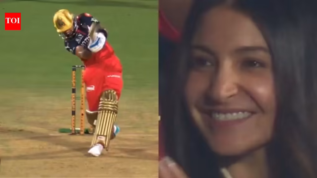 Virat Kohli’s no-look six leaves Anushka Sharma impressed; her reaction goes viral – Watch | Cricket News – The Times of India